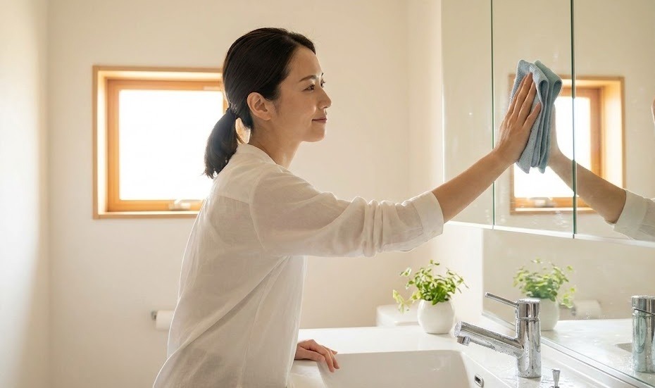 「ついで掃除」の基本は、「使ったその場でサッとリセット」することです。例えば、朝の身支度で洗面所を使った後、手を洗うついでに飛び散った水滴をタオルでサッと拭き取る。これだけで、水垢の発生を大幅に防ぐことができます。鏡についた歯磨き粉のハネも、その場で拭けば一瞬できれいになります。