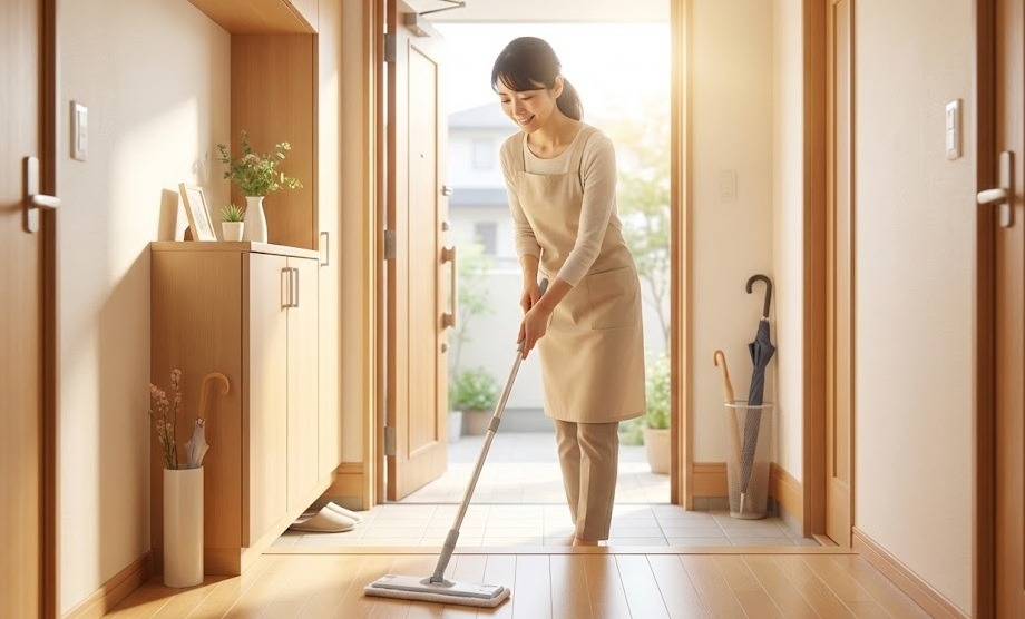 花粉が気になるこの時期は、帰宅時に玄関で上着を払うついでに、たたきをサッと水拭きする 。この「ついで掃除」を習慣にするだけで、家の中に入り込む花粉の量を大幅に減らすことができます。毎日の小さな積み重ねが、家族の快適な暮らしを守る大きな力になります。